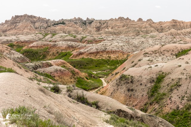It’s unusual to see so much green in the Badlands, but they had a lot of rain this year just like everywhere else. Pop of color helps offset the flat sky.